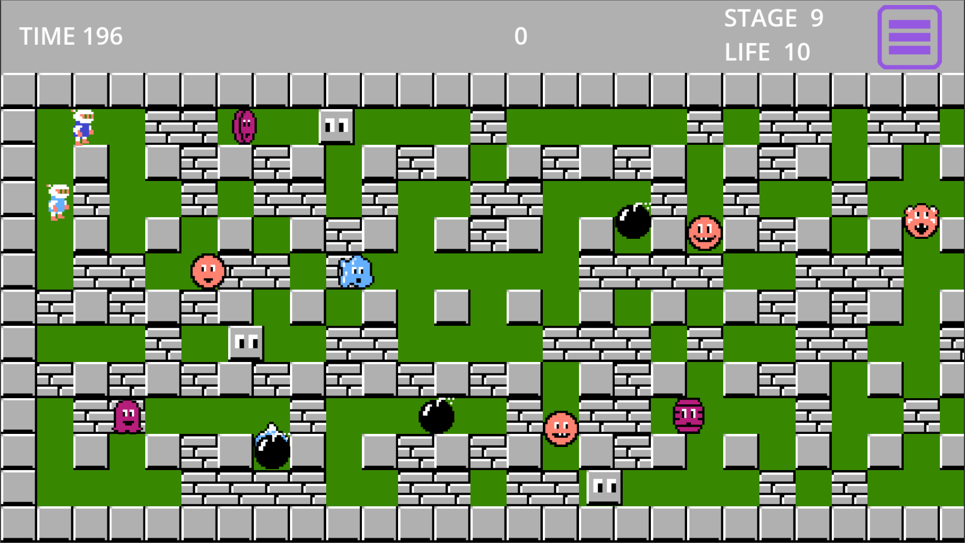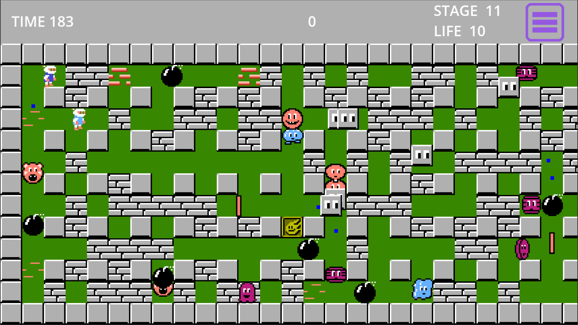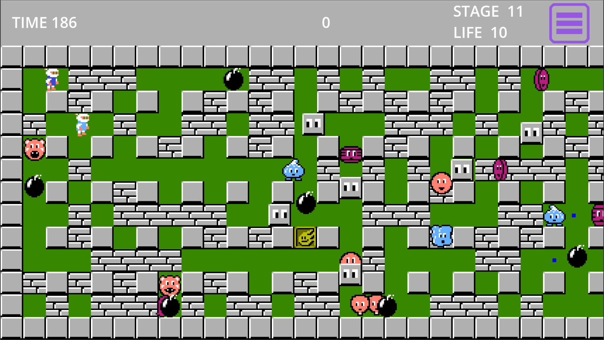 Classic Bomberman game with new mobs and starting settings. At the game’s start, you can choose the number of mobs, enable new mobs not in the original game, allow mobs to shoot bullets, and change the color of the game field. You can also play with two players!